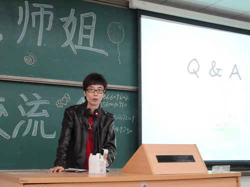 随后,20多位校友轮流上台发言,简单地介绍了自己的就业经验。除此之外,他们还给07级的准毕业生提供了各种就业渠道的相关联系方式和交流方式,这等于无形中赠与了大家一笔丰厚的财富。